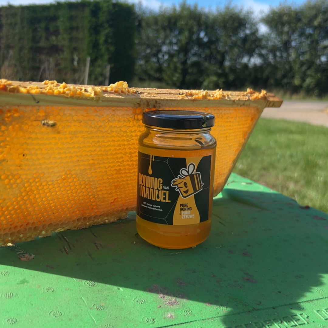 Ontdek de smaak van Zeeland met de pure honing van imker Manuel. Deze 100% natuurlijke honing wordt met zorg en liefde geoogst door Manuel zelf, direct uit zijn bijenkasten in het Zeeuwse landschap. Geen toevoegingen, geen verhitting – alleen pure, rauwe honing, precies zoals de bijen het bedoeld hebben.